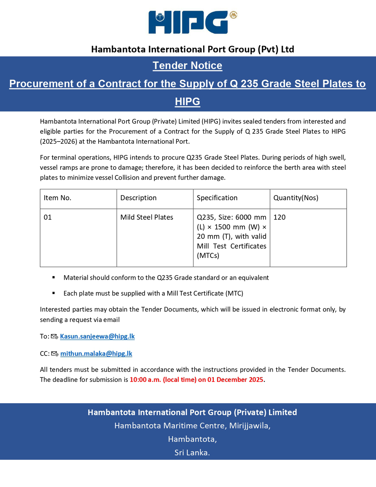 Procurement of a Contract for the Supply of Q 235 Grade Steel Plates to HIPG