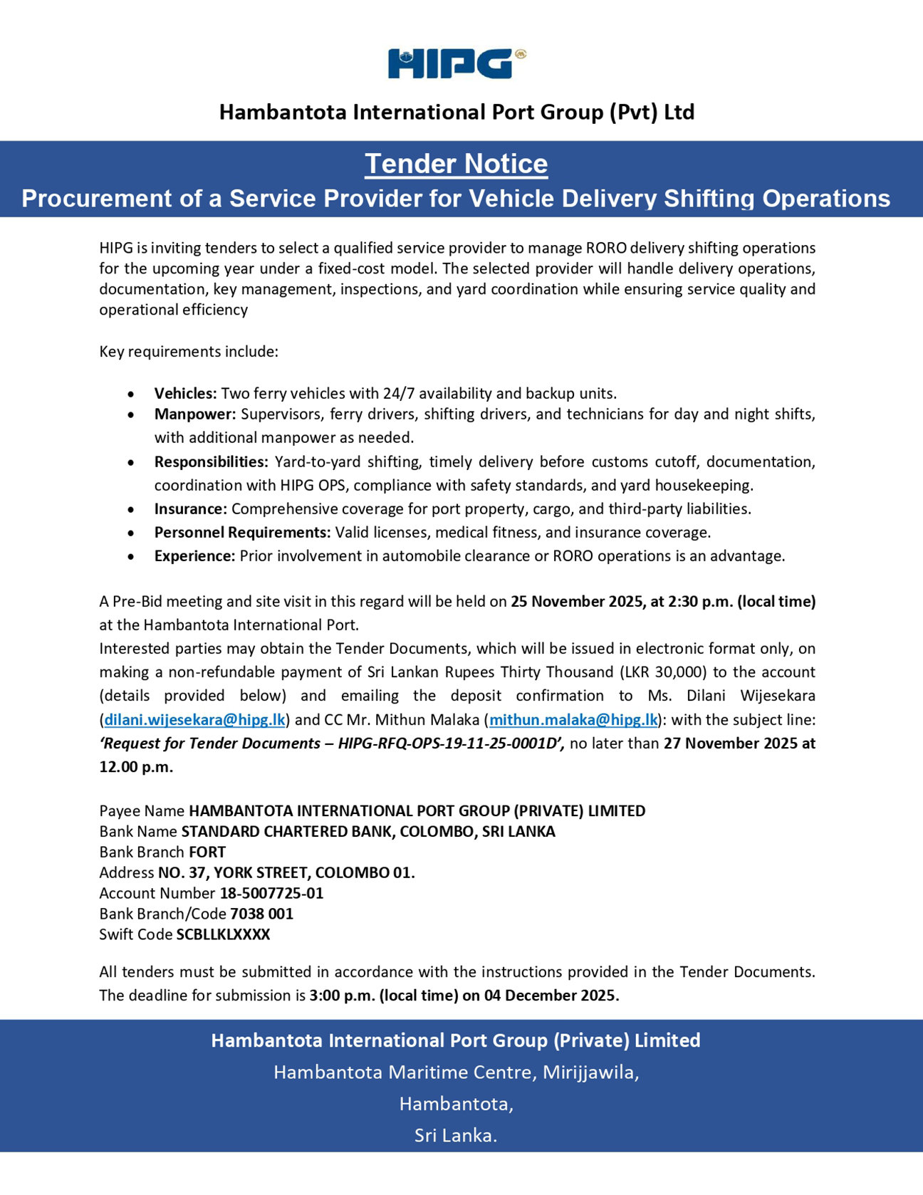 Procurement of a Service Provider for Vehicle Delivery Shifting Operations