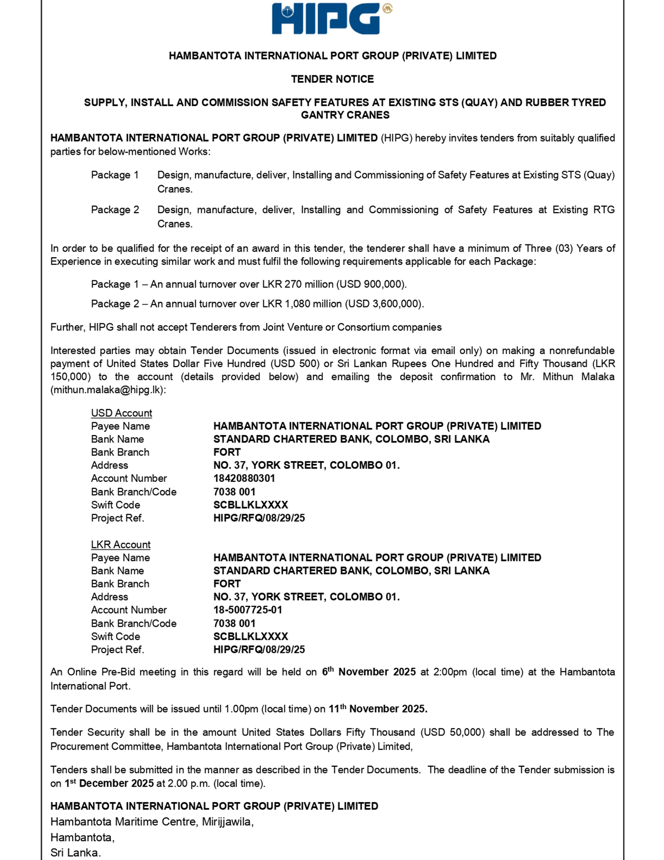 SUPPLY, INSTALL AND COMMISSION SAFETY FEATURES AT EXISTING STS (QUAY) AND RUBBER TYRED GANTRY CRANES