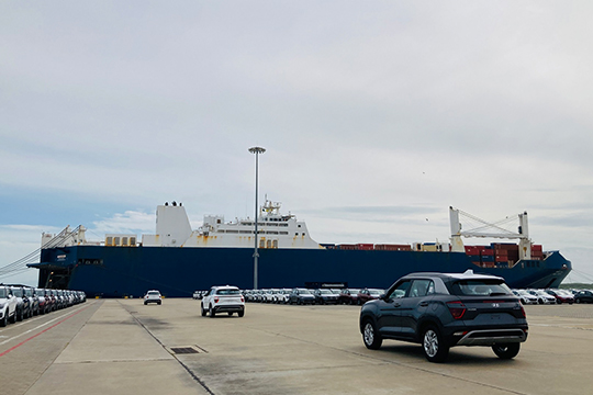 Recently, the Multipurpose vessel MV Bahri HOFUF called to pick up transshipped vehicles from India, which are enroute to Mexico, Vera Cruz Port. The specialty of multipurpose vessels is that they are designed with facilities to carry a wide range of cargo including containers, break bulk, and RORO. Earlier this year, HIP handled M.V. Glovis Champion, the largest RORO shipment to call at the port to date.