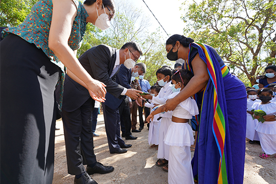 The ambassador and delegates were then invited to visit a village home where they spent some time getting to know the residents. The ceremony ended with the Kandagasmankada residents treating the invited guests to a display of their agricultural produce and to a sampling of homemade refreshments.