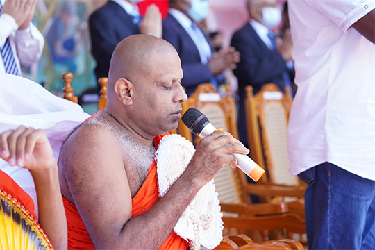 Chief Incumbent of the Kandagasmankada Rajamaha Viharaya Galapitagala Premarathana Thero delivering an anusasana