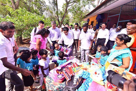 Distribution of toys to the school children of Kandagasmankada Primary School by CMG Chairman Miao Jianmin.